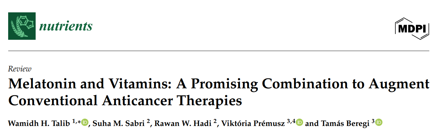 Talib, W.H.; Sabri, S.M.; Hadi, R.W.; Prémusz, V.; Beregi, T. Melatonin and Vitamins: A Promising Combination to Augment Conventional Anticancer Therapies. Nutrients 2025, 17, 3120. https://doi.org/10.3390/nu17193120