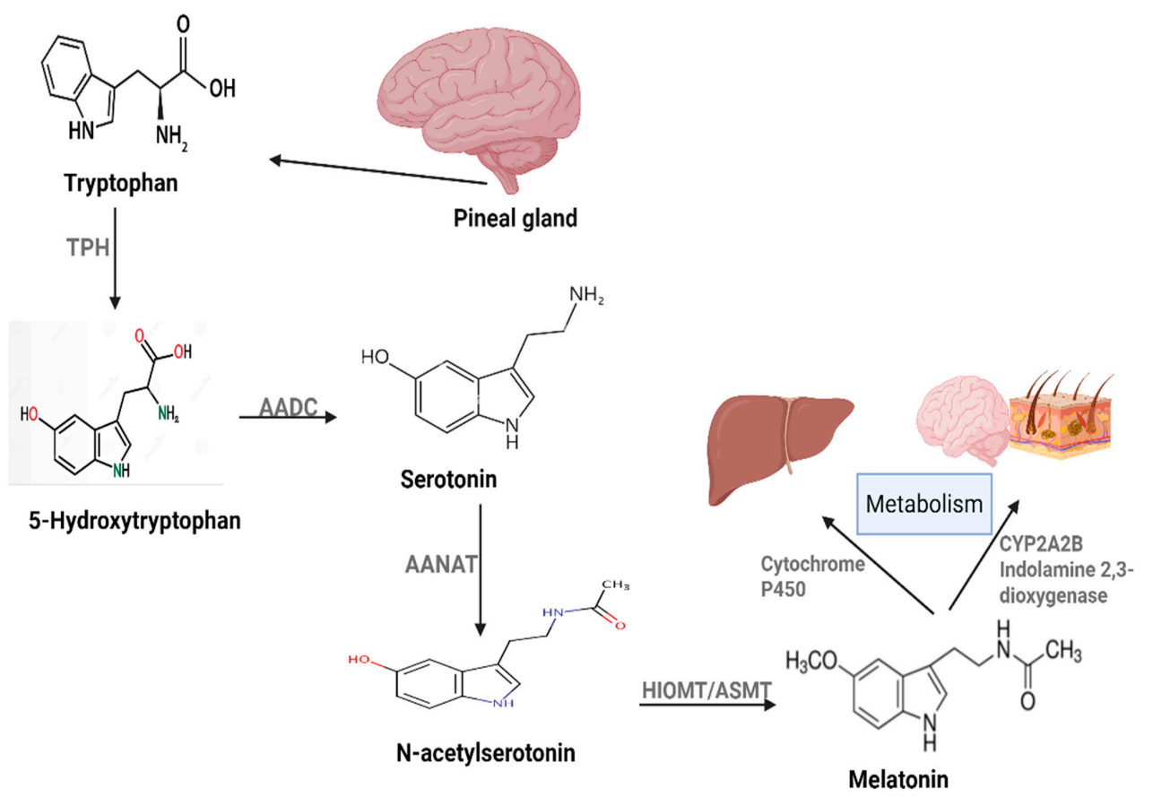 图:人体内褪黑素的生成与代谢