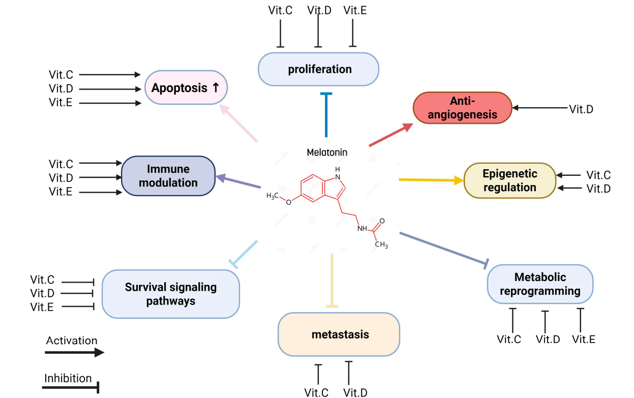 图:褪黑素与维生素的协同抗癌机制