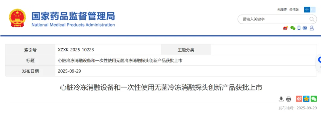 近日,国家药品监督管理局正式批准了沈阳鹏悦科技有限公司申报的心脏冷冻消融设备和一次性使用无菌冷冻消融探头的创新产品注册申请。这一突破性进展标志着我国在心律失常介入治疗领域实现重大技术跨越,为持续性房颤患者提供了更安全、高效的治疗新选择。