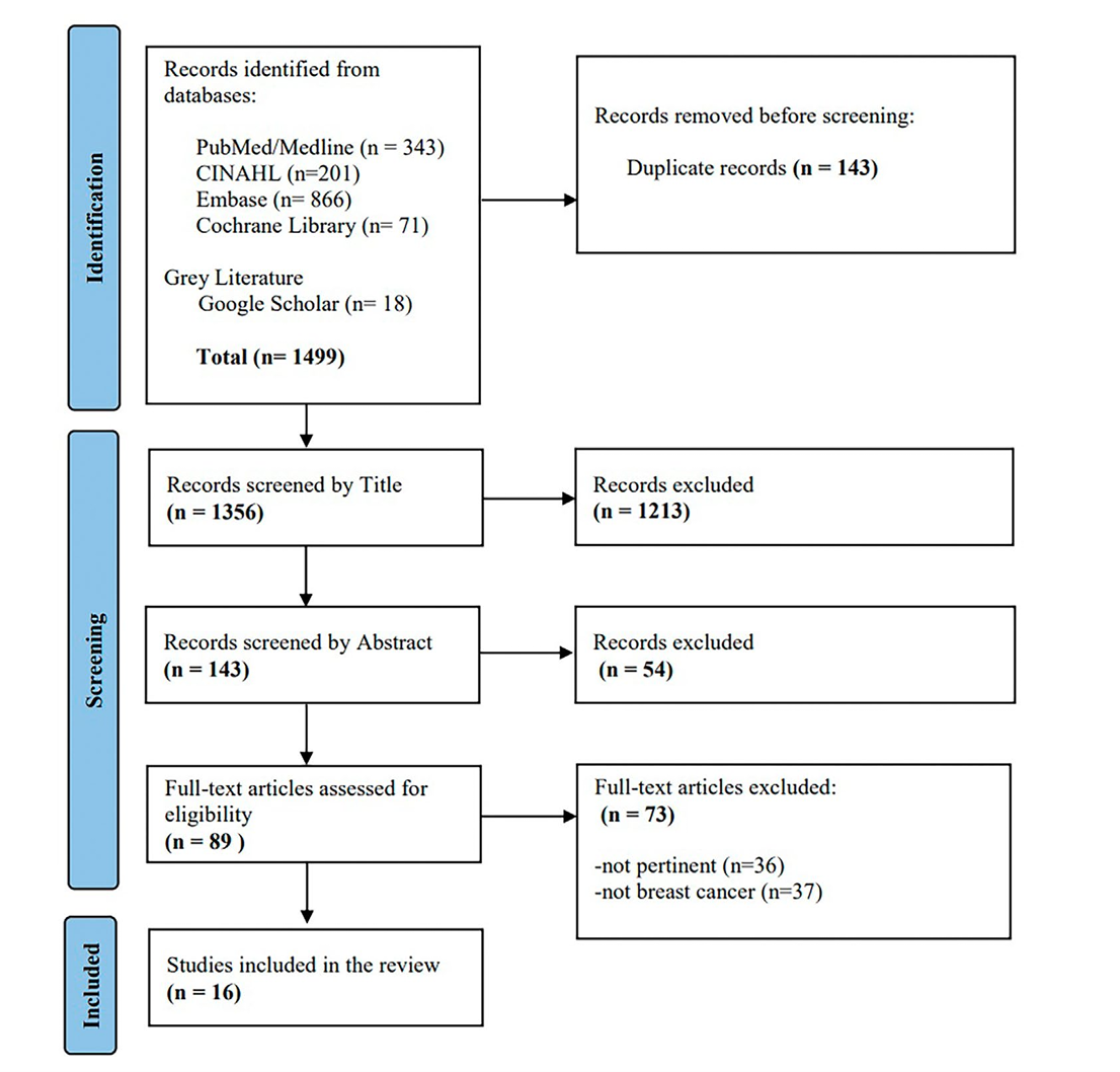 本研究采用了严格的范围综述设计,遵循了PRISMA-ScR报告规范与JBI方法学框架,研究问题基于PCC模型构建,其中“人口”为乳腺癌护士,“概念”涵盖其角色、能力及教育项目,“上下文”则限定于乳腺癌护理环境,文献检索工作于2024年7月至9月期间系统开展,覆盖了PubMed、Embase、Cochrane Library、CINAHL等多个权威数据库,并对灰色文献进行了补充检索,初步共识别出1499条相关记录,经过去重和标题摘要筛选后,有143篇文献进入全文评估阶段,最终共有16项研究被纳入综合分析,这些研究发表于2001年至2024年之间,涵盖了多种研究设计,包括系统综述、多中心项目、横断面调查、混合方法研究以及德尔菲专家咨询等,数据提取工作由两名研究者独立完成,并通过第三人协商解决分歧,提取内容包括作者、发表年份、国家、研究设计、样本特征、干预措施、护士能力评估以及研究质量等多项指标,数据分析采用了描述性统计和叙述性综合方法,结果通过表格和图形进行了可视化呈现,以增强结果的清晰度与可理解性。