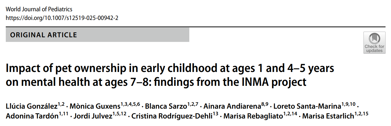 González, L., Guxens, M., Sarzo, B. et al. Impact of pet ownership in early childhood at ages 1 and 4–5 years on mental health at ages 7–8: findings from the INMA project. World J Pediatr (2025). https://doi.org/10.1007/s12519-025-00942-2