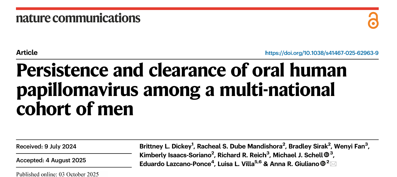 Dickey, B.L. et al. Persistence and clearance of oral human papillomavirus among a multi-national cohort of men. Nat Commun 16, 8816 (2025). https://doi.org/10.1038/s41467-025-62963-9