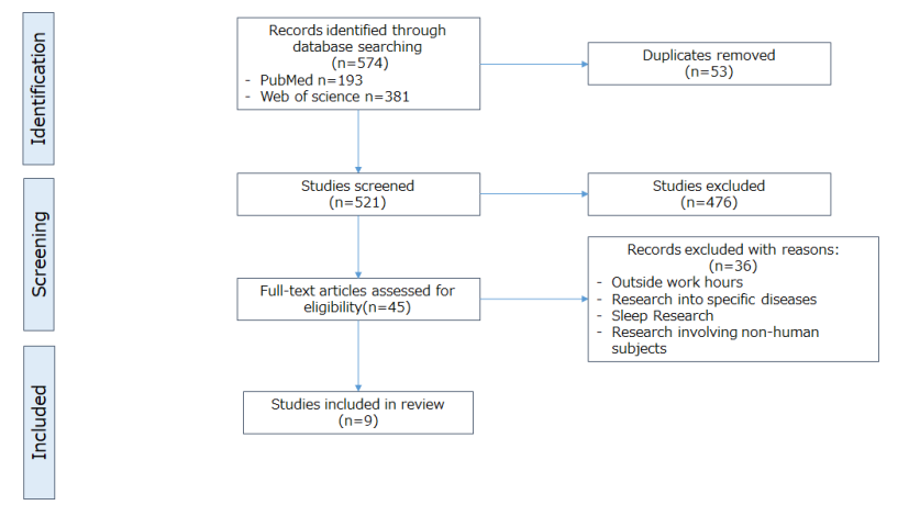 研究人员采用范围综述方法,系统检索PubMed和Web of Science数据库,关键词涵盖“工作场所”、“嗜睡或餐后低血糖”、“生产力”、“测量”等,筛选2014年至2024年间发表的相关研究。纳入标准包括:工作时间内或模拟工作环境的研究,排除糖尿病及心脏病患者,精神疾病患者,及仅关注疲劳或非工作期间的研究。共检索到521篇文献,经筛选最终纳入9篇符合标准的研究。