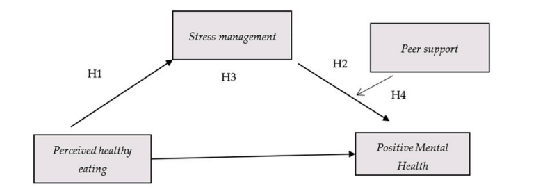 为此,本研究聚焦于早期青春期(13–15岁)群体,采用横断面设计,纳入505名西班牙青少年,通过自编在线问卷评估其自我感知的健康饮食、应激管理能力、同伴支持水平及积极心理健康(PMH)。PMH采用Lluch-Canut的正向心理健康问卷(PMHQ)进行测量,涵盖个人满意度、利他态度、自控力、自主性、问题解决能力与人际交往技能六个维度;而饮食感知、应激管理和同伴支持则采用单项五点式自评量表。数据分析使用SPSS PROCESS宏,在控制性别、年龄、国籍及教育支持等变量后,检验应激管理的中介作用与同伴支持的调节效应。