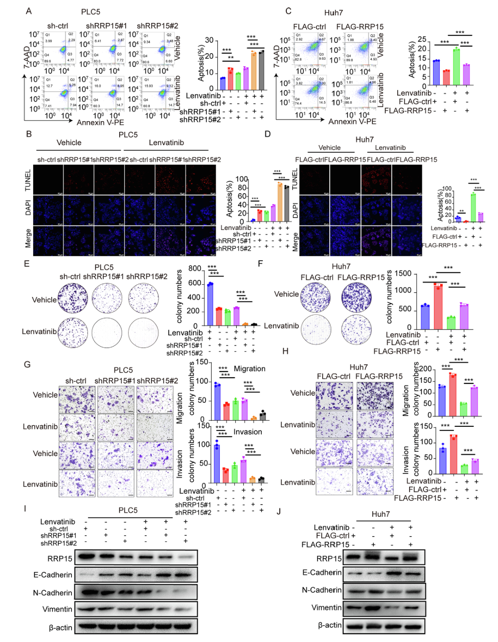 图1 RRP15对肝细胞癌乐伐替尼敏感性及细胞增殖和转移的调控