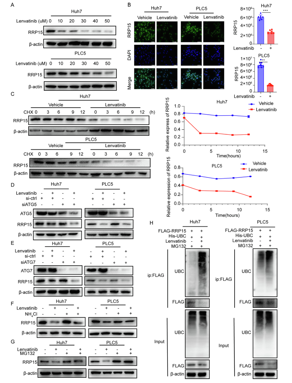图2 乐伐替尼通过泛素-蛋白酶体途径诱导RRP15降解
