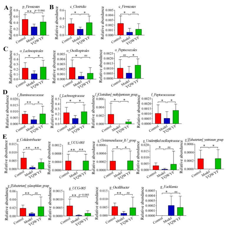 图:益气温阳方改善了DKD小鼠在不同水平上厚壁菌门的相对丰度