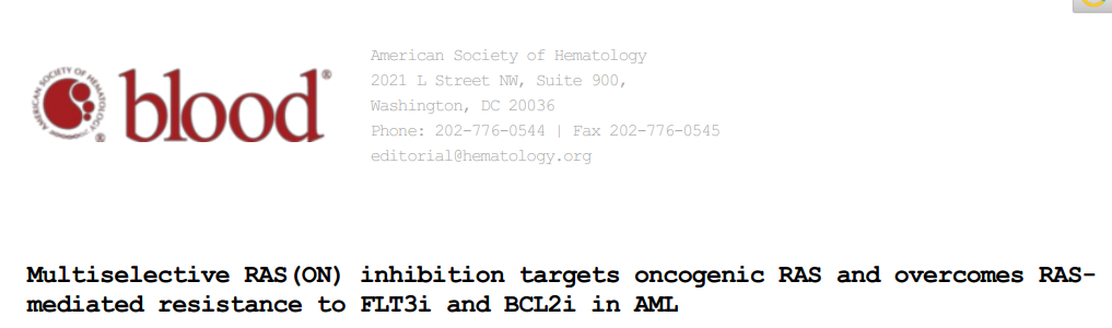 急性髓系白血病(AML)是一种异质性极高的恶性血液病,尽管FLT3和BCL2抑制剂的问世改善了部分患者的预后,但复发和耐药仍旧是治疗的主要挑战。RAS基因家族,包括NRAS和KRAS,约在10%-30%的AML患者中存在突变,且RAS/MAPK信号通路异常激活被认为是导致FLT3i和BCL2i耐药的重要机制。传统上,RAS被认为是“不可药物化”的靶点,原因在于其缺乏适合小分子结合的深层口袋结构。近期,针对特定KRAS突变的抑制剂在实体瘤中取得了突破,但由于AML中RAS突变的多样性和异质性,单一靶点抑制剂的效用有限,亟需开发广谱的RAS抑制策略。