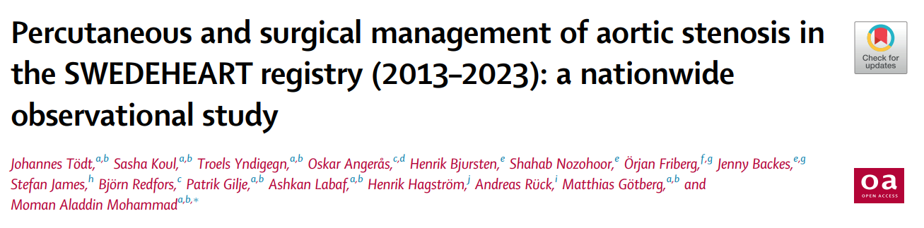Tödt, Johannes et al.Percutaneous and surgical management of aortic stenosis in the SWEDEHEART registry (2013–2023): a nationwide observational study.The Lancet Regional Health – Europe, Volume 60, 101520