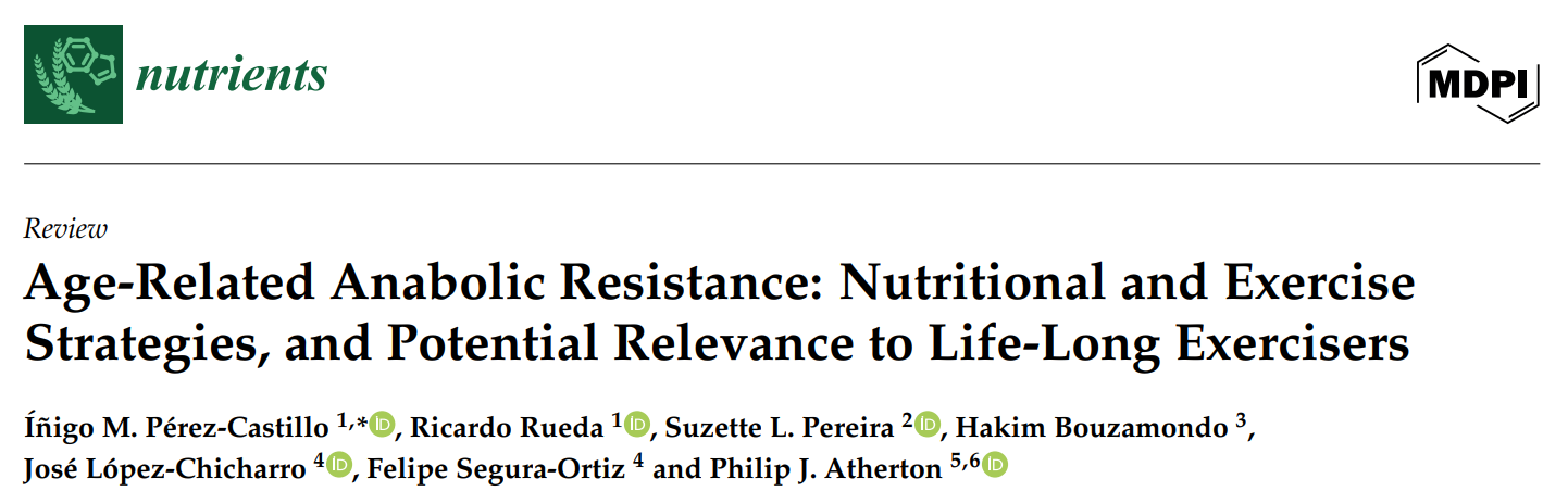 Pérez-Castillo, Í.M.; Rueda, R.; Pereira, S.L.; Bouzamondo, H.; López-Chicharro, J.; Segura-Ortiz, F.; Atherton, P.J. Age-Related Anabolic Resistance: Nutritional and Exercise Strategies, and Potential Relevance to Life-Long Exercisers. Nutrients 2025, 17, 3503. https://doi.org/10.3390/nu17223503