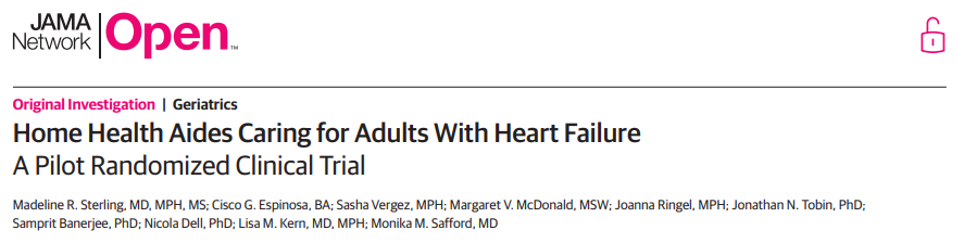 Sterling MR, Espinosa CG, Vergez S, et al. Home Health Aides Caring for Adults With Heart Failure: A Pilot Randomized Clinical Trial. JAMA Netw Open. 2025;8(11):e2548121. doi:10.1001/jamanetworkopen.2025.48121