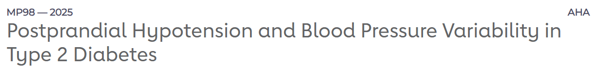 餐后低血压是2型糖尿病患者中一种常见但未被充分认识的血流动力学紊乱。近期,在美国心脏协会科学年会(2025 AHA)上,研究人员发表了一项研究,旨在评估餐后低血压(PPH)在2型糖尿病(T2DM)患者中的患病率与特征,并探讨其与血压变异性及临床参数之间的关联。