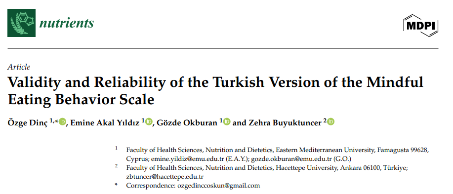 Dinç, Ö.; Akal Yıldız, E.; Okburan, G.; Buyuktuncer, Z. Validity and Reliability of the Turkish Version of the Mindful Eating Behavior Scale. Nutrients 2025, 17, 3083. https://doi.org/10.3390/nu17193083