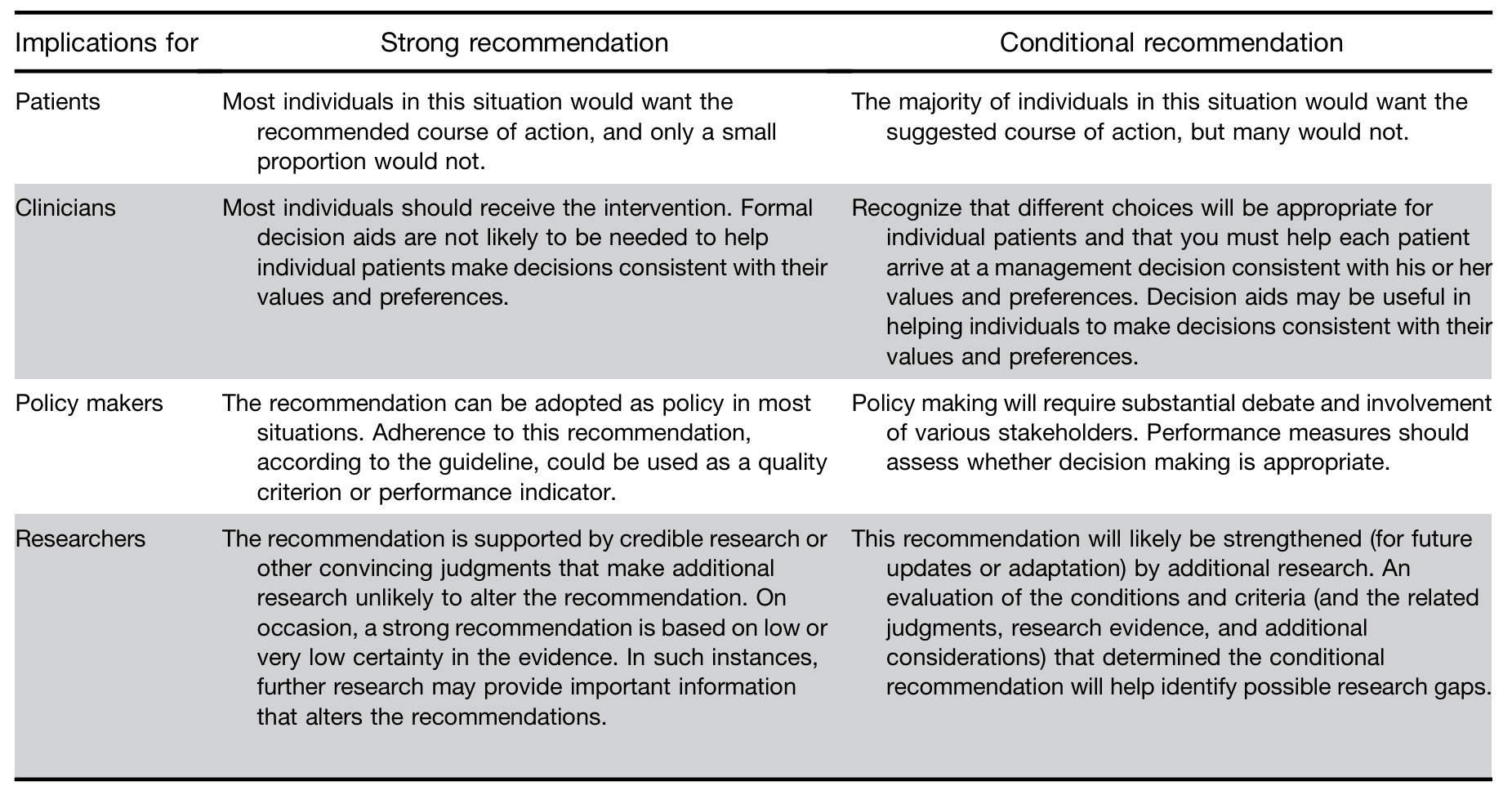 表1:强推荐和条件推荐的解释