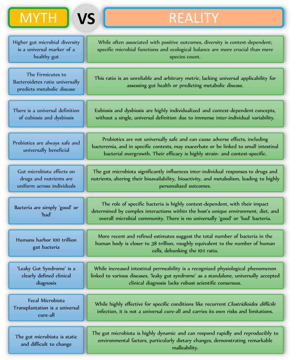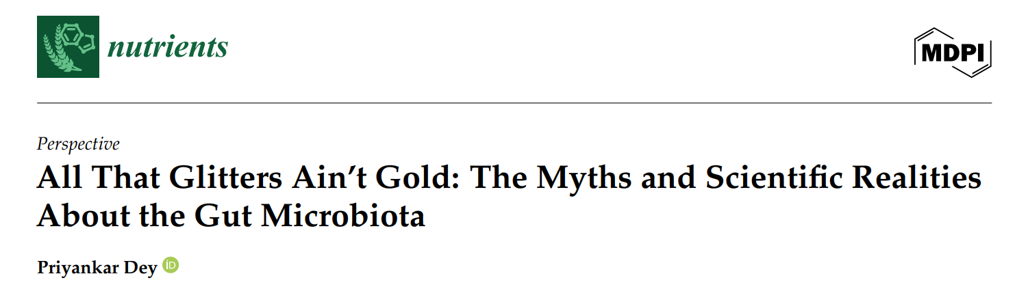 Dey, P. All That Glitters Ain’t Gold: The Myths and Scientific Realities About the Gut Microbiota. Nutrients 2025, 17, 3121. https://doi.org/10.3390/nu17193121
