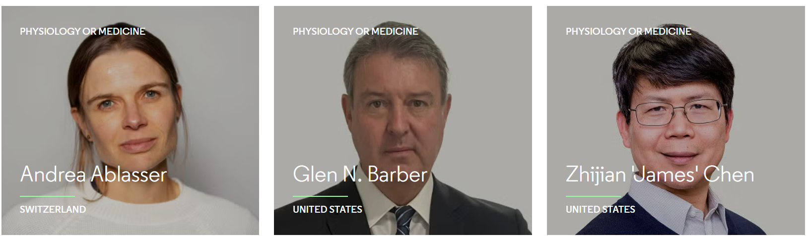 当病毒、细菌入侵人体,免疫系统如何快速识别并启动防御?这一问题曾困扰免疫学界数十年。美国德克萨斯大学西南医学中心教授陈志坚(Zhijian 'James' Chen)与瑞士洛桑联邦理工学院教授安德里亚・阿布拉瑟(Andrea Ablasser)、美国俄亥俄州立大学教授格伦・N・巴伯(Glen N. Barber)的联合研究,揭开了固有免疫中至关重要的 “cGAS-STING 通路” 机制,为感染性疾病、自身免疫病与癌症免疫治疗提供了全新靶点。
