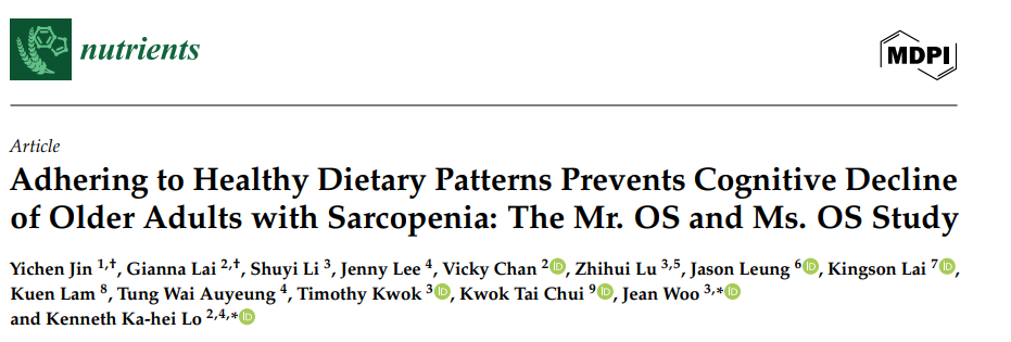 Jin, Y.; Lai, G.; Li, S.; Lee, J.; Chan, V.; Lu, Z.; Leung, J.; Lai, K.; Lam, K.; Auyeung, T.W.; et al. Adhering to Healthy Dietary Patterns Prevents Cognitive Decline of Older Adults with Sarcopenia: The Mr. OS and Ms. OS Study. Nutrients 2025, 17, 3070. https://doi.org/10.3390/nu17193070