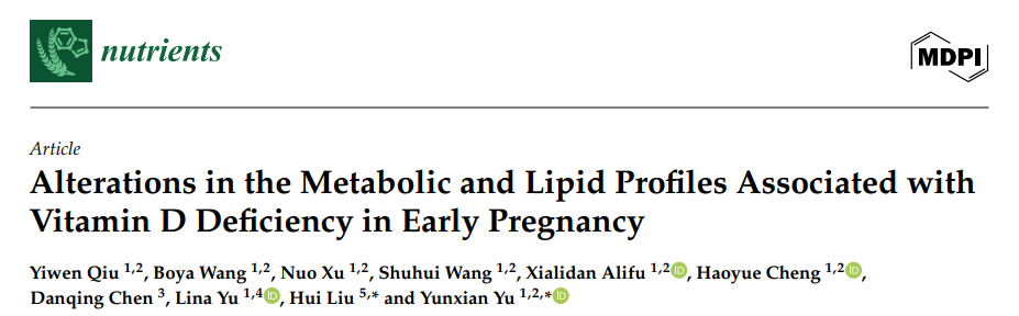 Qiu, Y.; Wang, B.; Xu, N.; Wang, S.; Alifu, X.; Cheng, H.; Chen, D.; Yu, L.; Liu, H.; Yu, Y. Alterations in the Metabolic and Lipid Profiles Associated with Vitamin D Deficiency in Early Pregnancy. Nutrients 2025, 17, 3096. https://doi.org/10.3390/nu17193096