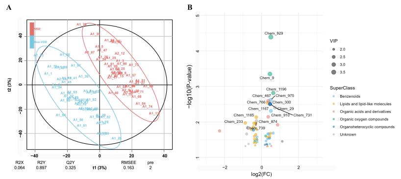 图:通过PLS-DA方法获得的与VDD相关的代谢物