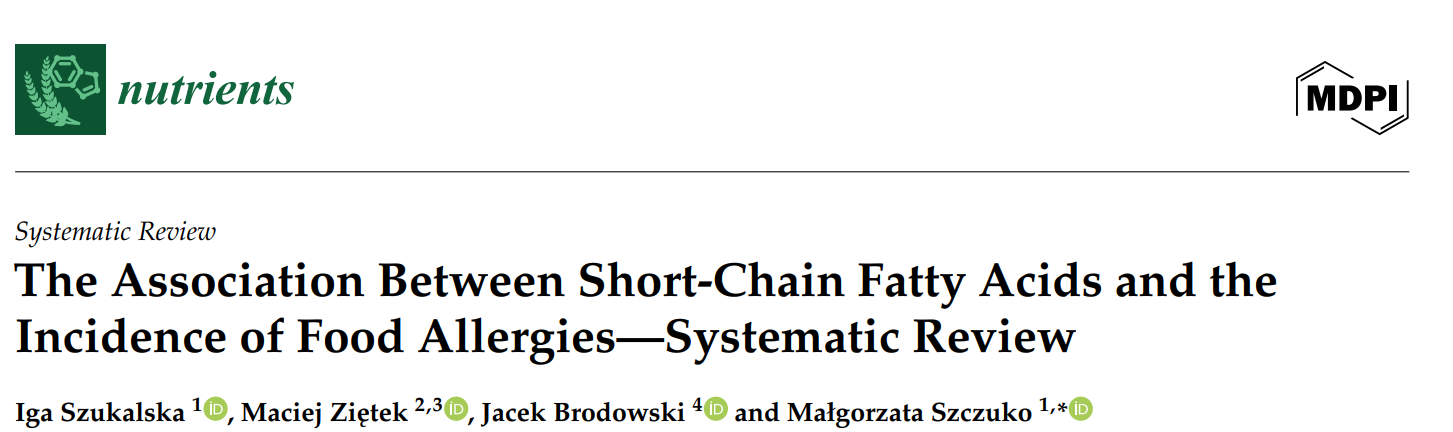 Szukalska, I.; Ziętek, M.; Brodowski, J.; Szczuko, M. The Association Between Short-Chain Fatty Acids and the Incidence of Food Allergies—Systematic Review. Nutrients 2025, 17, 3117. https://doi.org/10.3390/nu17193117