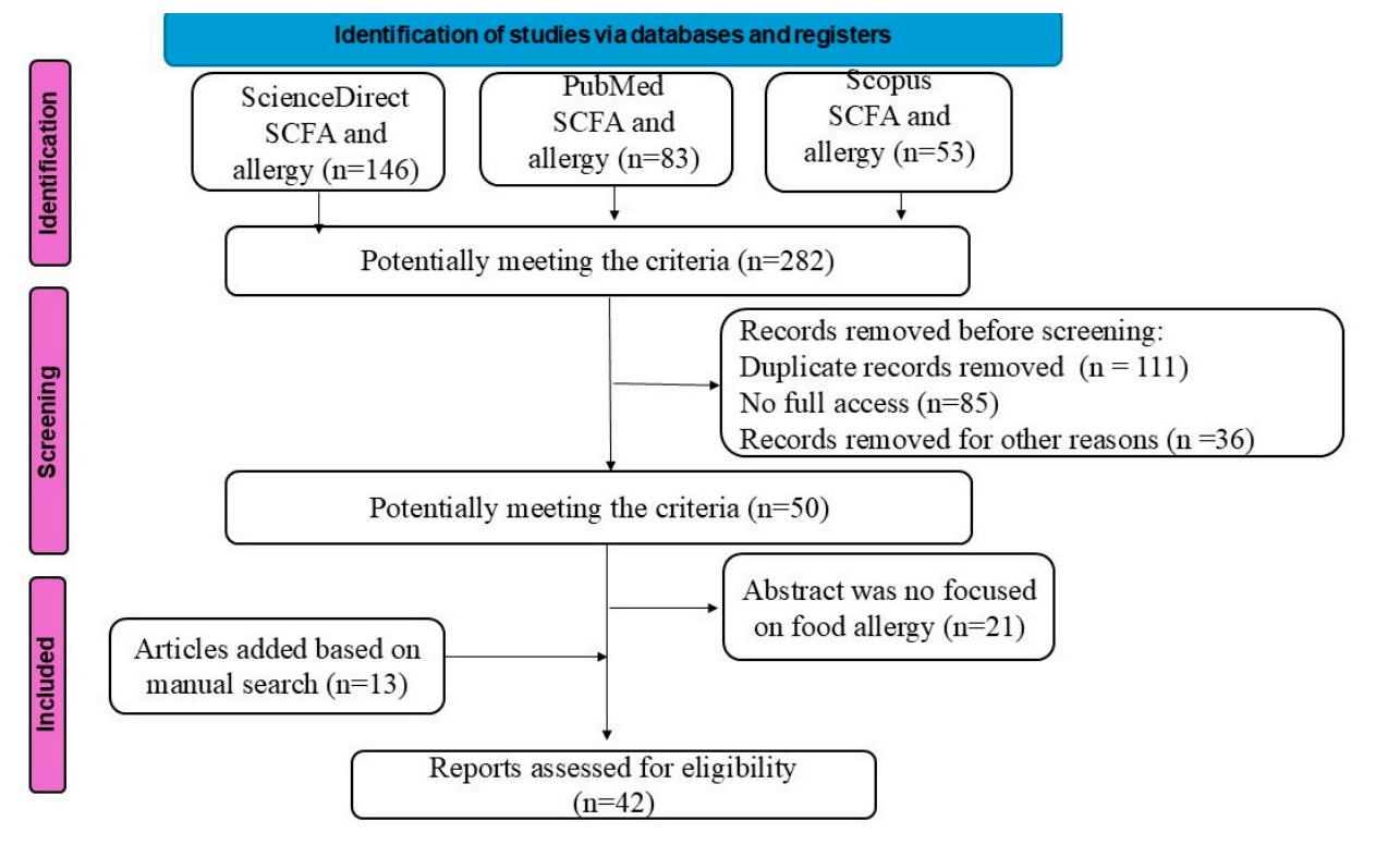 研究人员通过PubMed、ScienceDirect和Scopus数据库系统检索过去十年内发表的与“short-chain fatty acids and allergy”、“SCFA and food allergy”等关键词相关的文献。剔除重复、撤回、非全文可获得及数据不足的文献后,由两位作者独立筛选和评估研究质量。纳入的研究涵盖动物模型及人群调查,横跨免疫学、营养学及微生物学多个领域。