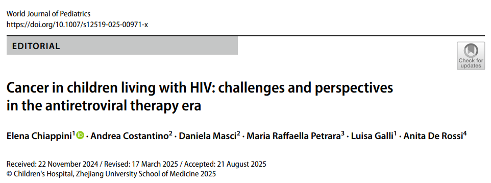 Chiappini, E., Costantino, A., Masci, D. et al. Cancer in children living with HIV: challenges and perspectives in the antiretroviral therapy era. World J Pediatr (2025). https://doi.org/10.1007/s12519-025-00971-x
