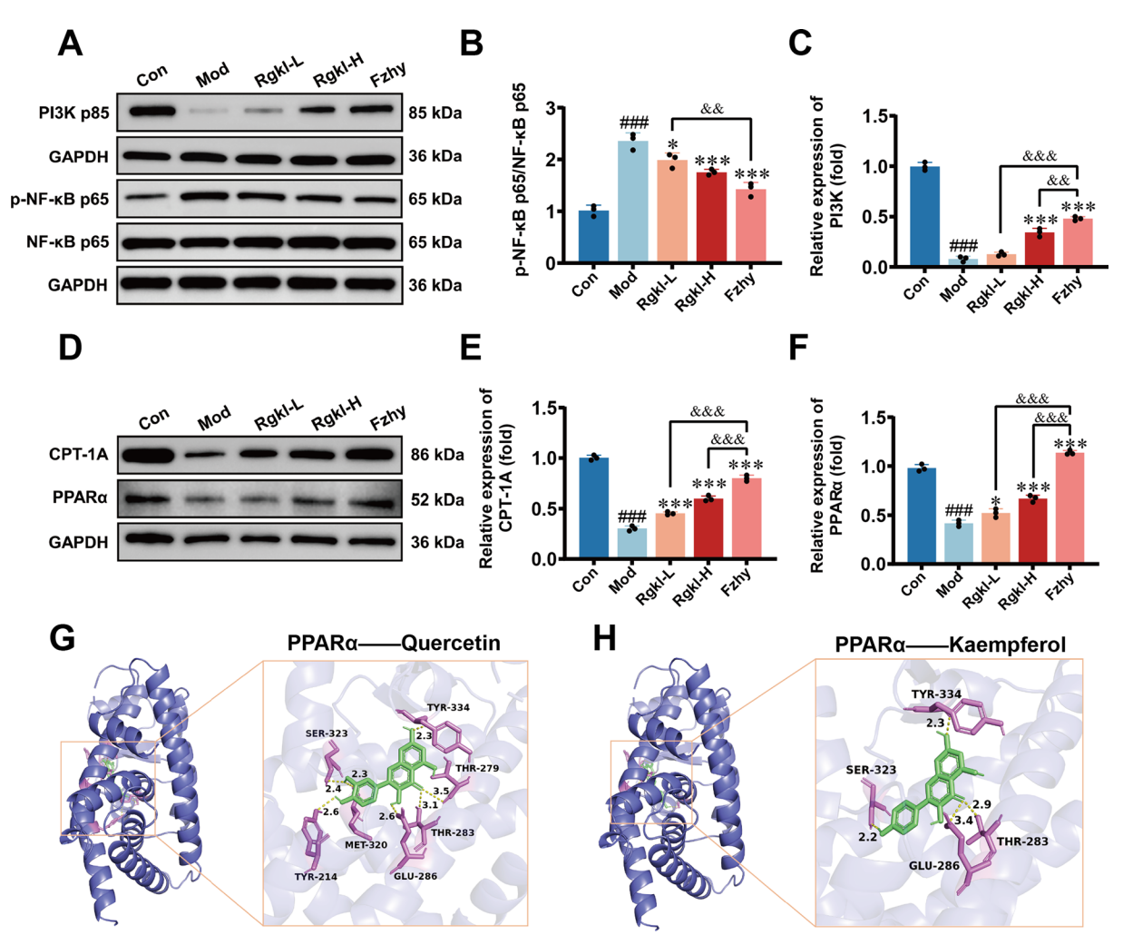 扫描电镜分析发现,Rgkl处理组LSEC滤孔结构得以保留,伴随eNOS表达上调,提示其有助于维持肝窦内皮功能。 分子机制方面,Rgkl主要通过调节LSEC的脂质代谢途径CD36/PPAR/CPT-1,恢复内皮细胞功能;同时抑制HSC的RhoA/ROCK/YAP及PI3K/AKT/NF-κB信号通路,减少细胞收缩及炎症反应。UPLC-MS鉴定出含有帕藜内酯C、蒿甲醚A、槲皮素等18种活性成分,这些成分与肝硬化改善高度相关,发挥协同效应。