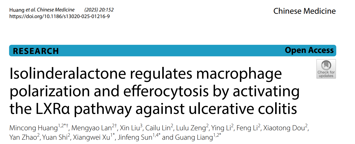 Huang, M., Lan, M., Liu, X. et al. Isolinderalactone regulates macrophage polarization and efferocytosis by activating the LXRα pathway against ulcerative colitis. Chin Med 20, 152 (2025). https://doi.org/10.1186/s13020-025-01216-9