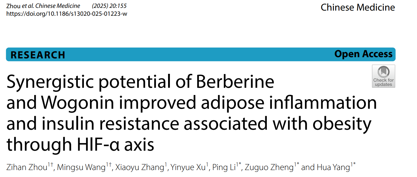 Zhou, Z., Wang, M., Zhang, X. et al. Synergistic potential of Berberine and Wogonin improved adipose inflammation and insulin resistance associated with obesity through HIF-α axis. Chin Med 20, 155 (2025). https://doi.org/10.1186/s13020-025-01223-w