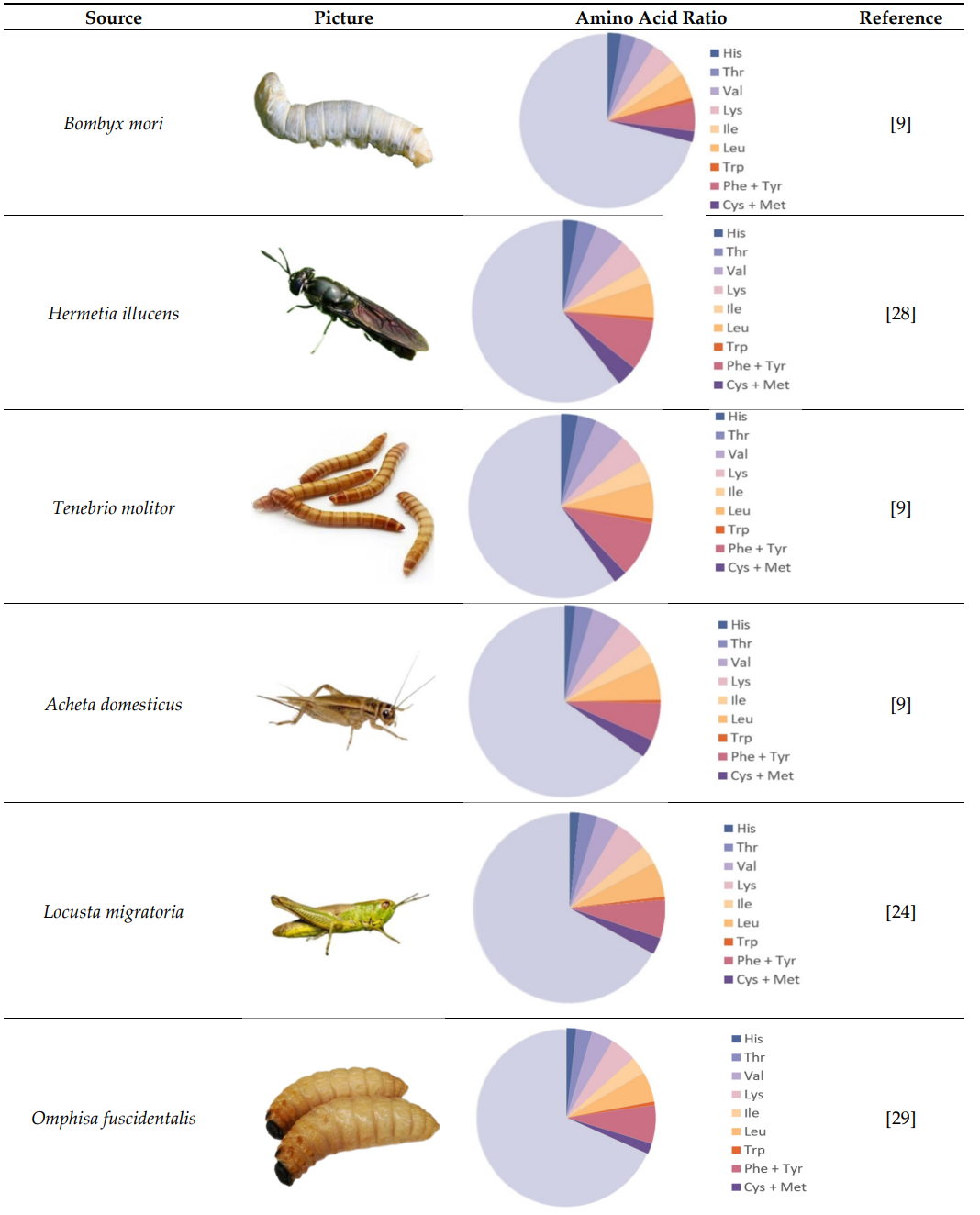 表:食用昆虫的必需氨基酸含量与联合国粮农组织(FAO)标准蛋白质的比较