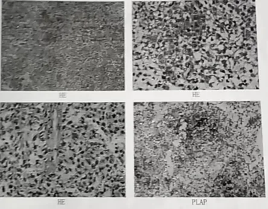 免疫组化结果:EMA(-),PR(-),Vimentin(+),P53(+),S-100(-),Syn(-),NSE(部分+),CD99(-),GFAP(-),Ki-67(+,60%),CD30(-),SALL-4(+),Glypican3(-),PLAP(+),CD117(+),Inhibin-α(-)。