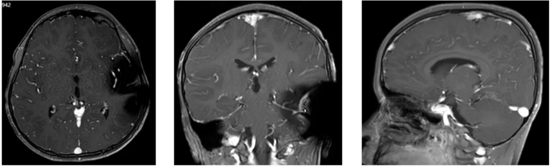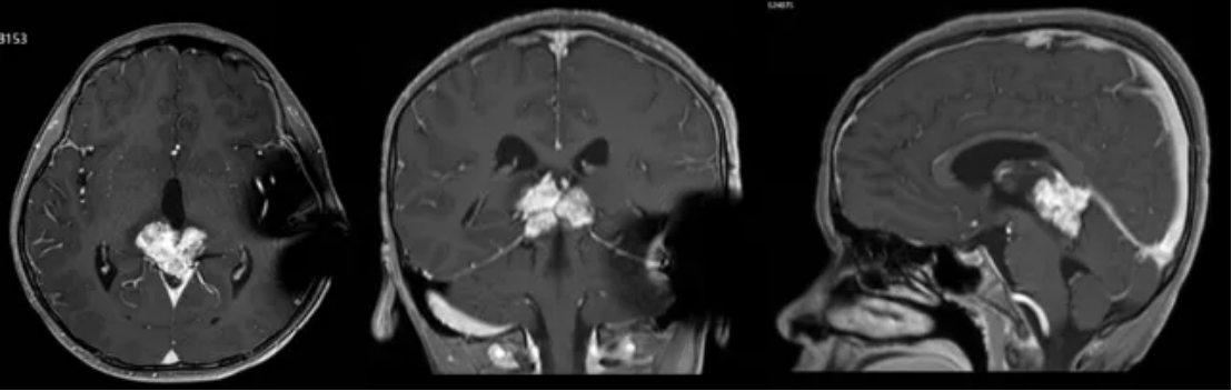 于2023年5月23日行小脑上入路松果体区肿瘤切除术,术后病理提示松果体区生殖细胞瘤(精原细胞瘤)。术后患者恢复良好,未行化疗和放疗。