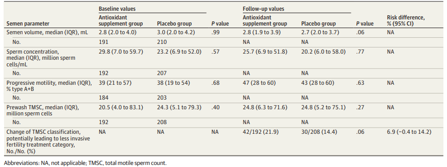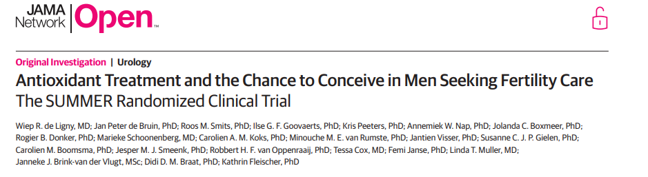 de Ligny WR, de Bruin JP, Smits RM, et al. Antioxidant Treatment and the Chance to Conceive in Men Seeking Fertility Care: The SUMMER Randomized Clinical Trial. JAMA Netw Open. 2025;8(9):e2532405. doi:10.1001/jamanetworkopen.2025.32405