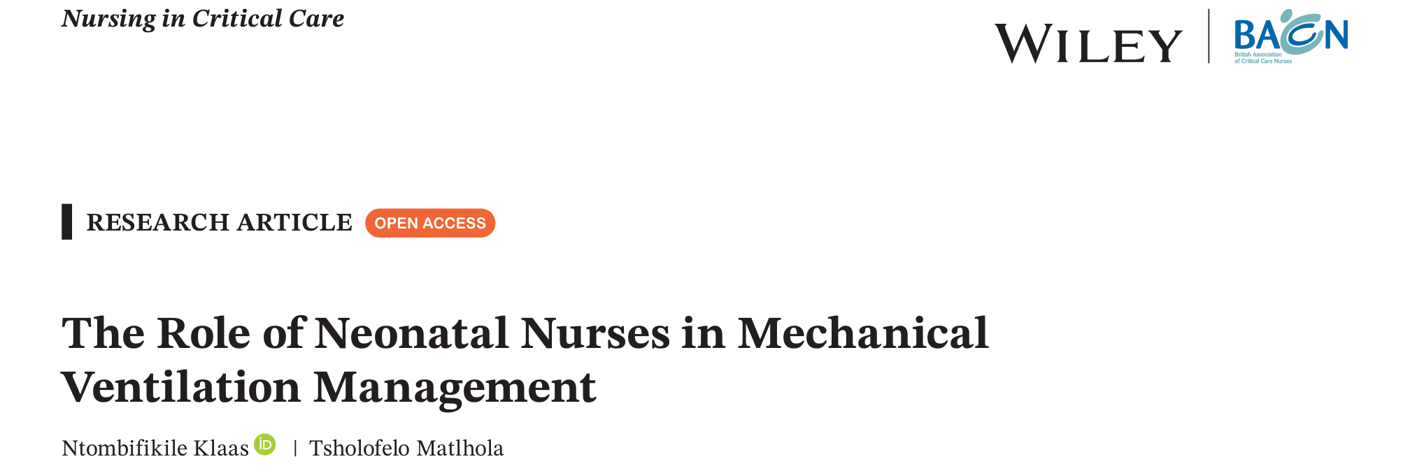 Klaas, N., & Matlhola, T. (2025). The Role of Neonatal Nurses in Mechanical Ventilation Management. Nursing in Critical Care, 30, e70150. https://doi.org/10.1111/nicc.70150