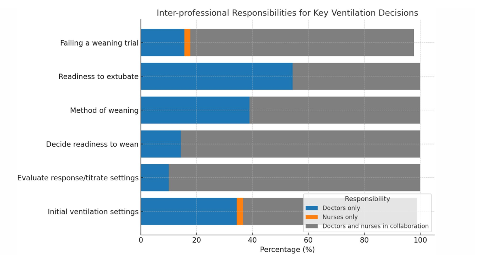 图1:关键通气决策的跨专业责任,以医生仅、护士仅、医生和护士协作的角色百分比分布呈现,数据突出了协作决策的主导地位