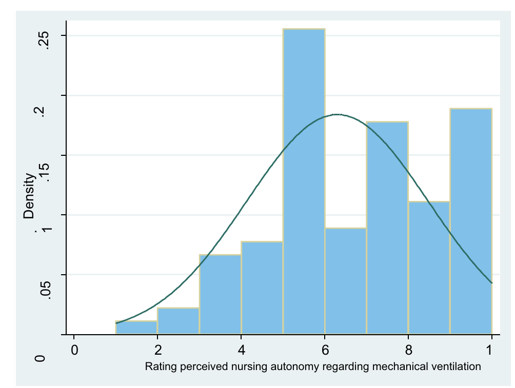 图2:感知护士在机械通气决策中的自主权,使用从1(无自主权)到10(完全自主权)的视觉模拟量表测量,中位数6表示中等感知自主权