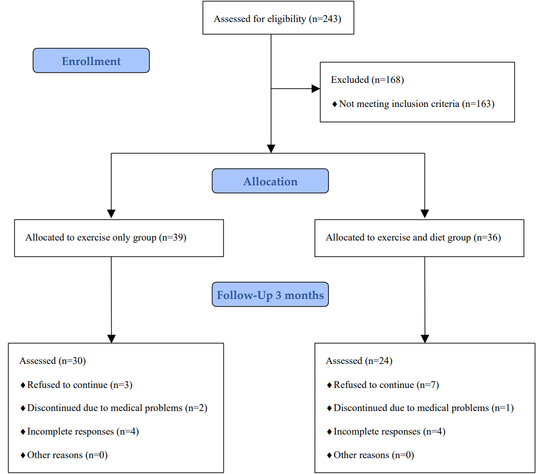 本研究为为期12周的准随机对照试验,纳入54名年龄41至61岁、更年期或围绝经期、活动量较低的女性。参与者依据意愿及轮换顺序分为运动组(仅运动,n=30)和组合组(运动+限时进食,n=24)。运动干预包括每周两次的中等强度有氧及阻力循环训练,采用MILON设备系统完成。限时进食要求参与者每日8小时内进食,自由选择开始时间,其他饮食习惯不做限制。