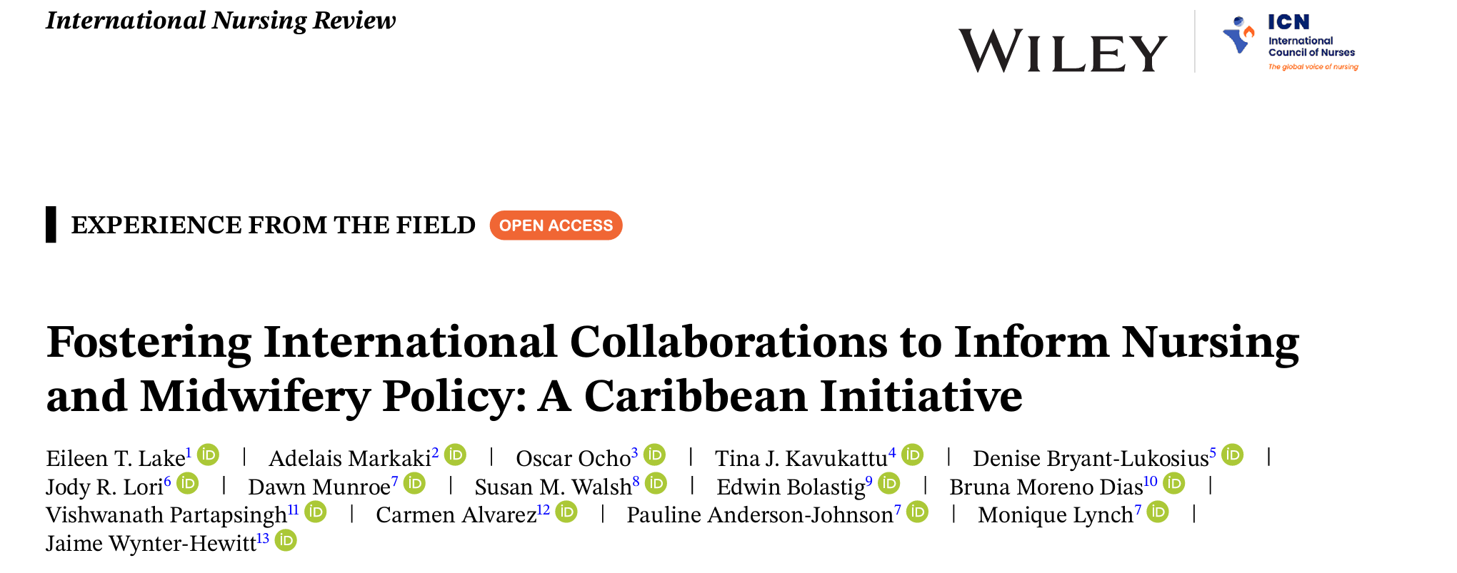 Lake, E. T., Markaki, A., Ocho, O., Kavukattu, T. J., Bryant-Lukosius, D., Lori, J. R., Munroe, D., Walsh, S. M., Bolastig, E., Dias, B. M., Singh, V. P., Alvarez, C., Anderson-Johnson, P., Lynch, M., & Wynter-Hewitt, J. (2025). Fostering International Collaborations to Inform Nursing and Midwifery Policy: A Caribbean Initiative. International Nursing Review, 72, e70081. https://doi.org/10.1111/nr.70081