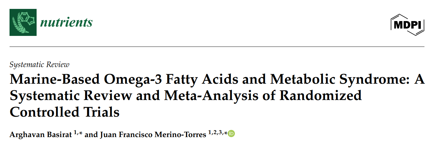 Basirat, A.; Merino-Torres, J.F. Marine-Based Omega-3 Fatty Acids and Metabolic Syndrome: A Systematic Review and Meta-Analysis of Randomized Controlled Trials. Nutrients 2025, 17, 3279. https://doi.org/10.3390/nu17203279