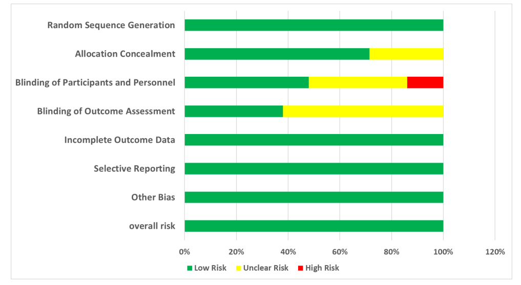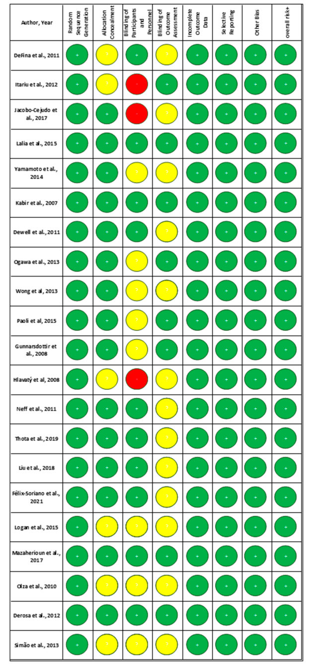 研究按Omega-3剂量分为低剂量(<1000 mg/day)、中剂量(1000-2000 mg/day)和高剂量(>2000 mg/day),按持续时间分为短期(≤8周)、中期(8-12周)和长期(>12周)。采集数据后,采用普通最小二乘法(OLS)进行剂量-持续时间效应的元回归分析,同时用Cochrane风险偏倚工具评估研究质量,检测发表偏倚。