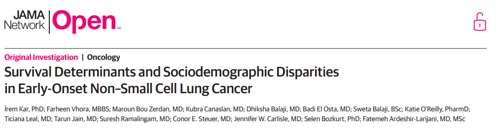 Kar İ, Vhora F, Bou Zerdan M, et al. Survival Determinants and Sociodemographic Disparities in Early-Onset Non–Small Cell Lung Cancer. JAMA Netw Open. 2025;8(10):e2537307. doi:10.1001/jamanetworkopen.2025.37307