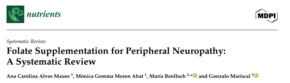 Alves Maues, A.C.; Moren Abat, M.G.; Benlloch, M.; Mariscal, G. Folate Supplementation for Peripheral Neuropathy: A Systematic Review. Nutrients 2025, 17, 3299. https://doi.org/10.3390/nu17203299