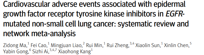 Ma Z, Cao F, Liao M, et al. Cardiovascular adverse events associated with epidermal growth factor receptor tyrosine kinase inhibitors in EGFR-mutated non-small cell lung cancer: systematic review and network meta-analysis. BMJ. 2025;390:e082834. Published 2025 Sep 2. doi:10.1136/bmj-2024-082834