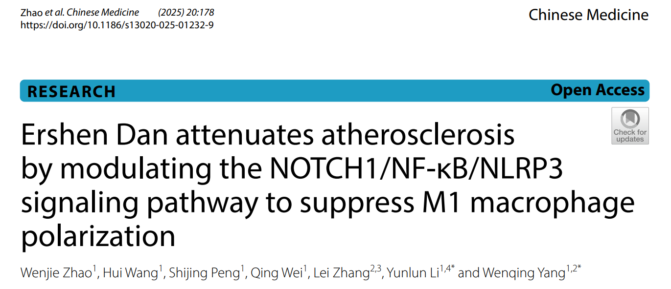 Zhao, W., Wang, H., Peng, S. et al. Ershen Dan attenuates atherosclerosis by modulating the NOTCH1/NF-κB/NLRP3 signaling pathway to suppress M1 macrophage polarization. Chin Med 20, 178 (2025). https://doi.org/10.1186/s13020-025-01232-9
