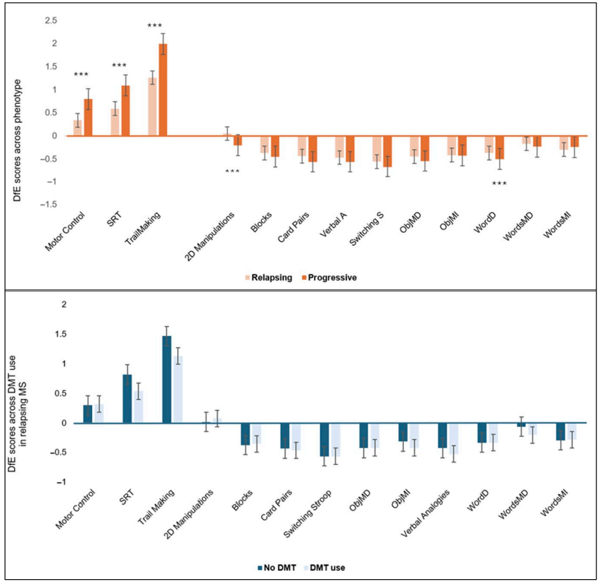 图:MS不同表型以及复发型MS中DMT对认知功能的影响