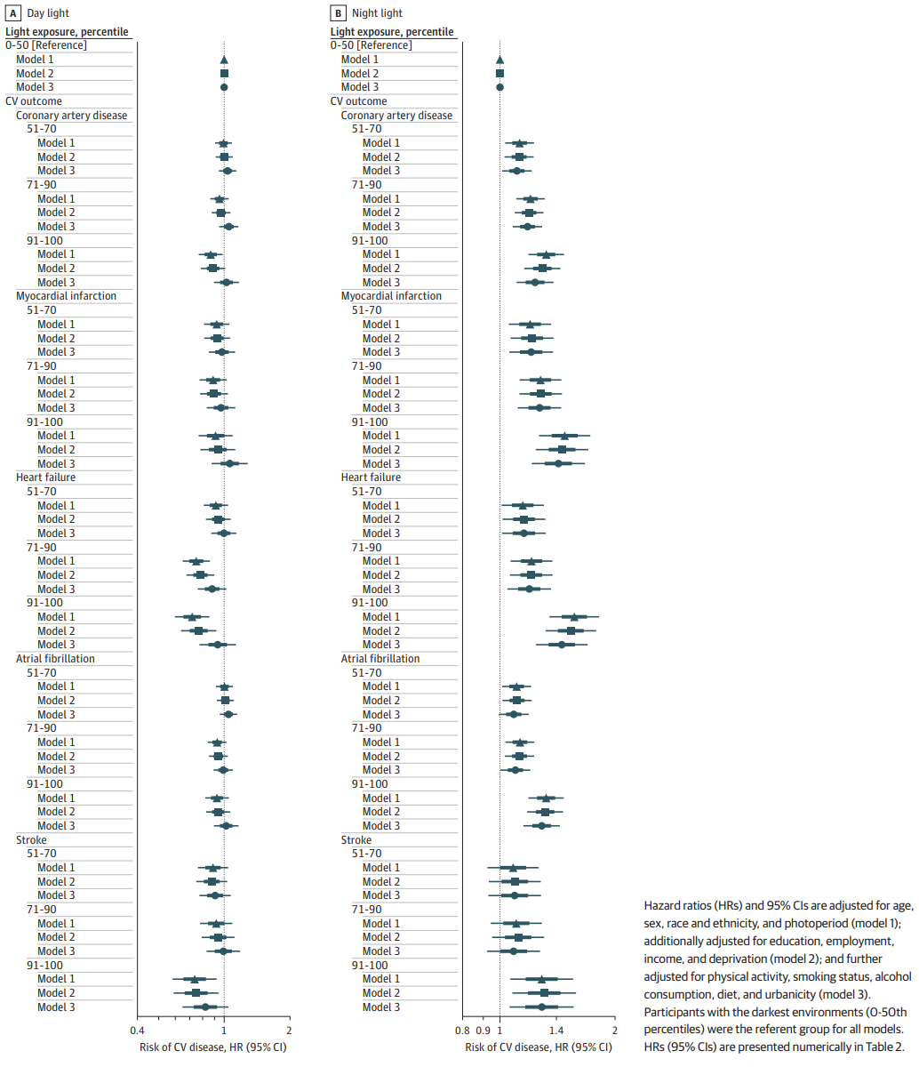Windred DP, Burns AC, Rutter MK, et al. Light Exposure at Night and Cardiovascular Disease Incidence. JAMA Netw Open. 2025;8(10):e2539031. doi:10.1001/jamanetworkopen.2025.39031