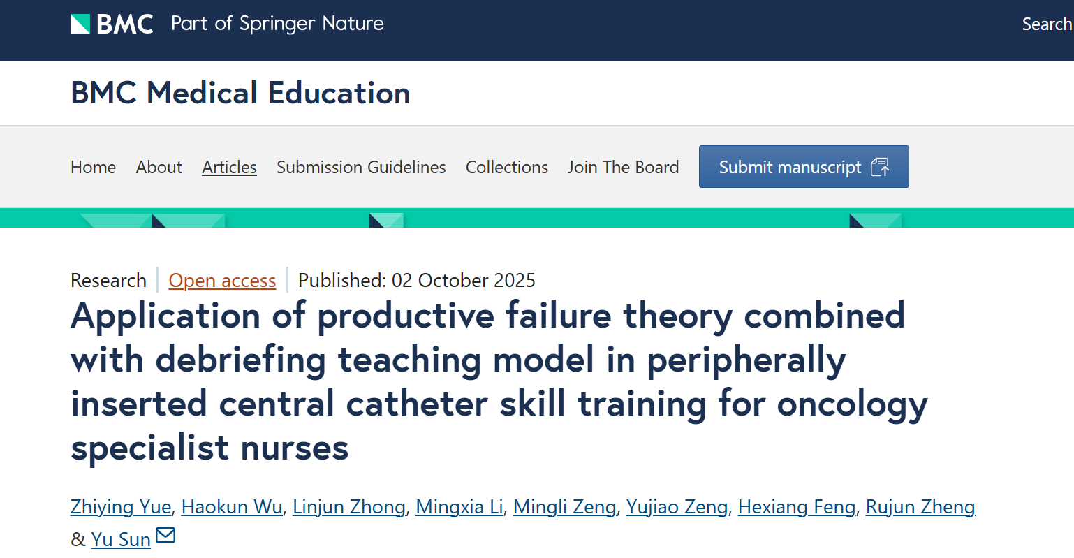 Yue, Z., Wu, H., Zhong, L. et al. Application of productive failure theory combined with debriefing teaching model in peripherally inserted central catheter skill training for oncology specialist nurses. BMC Med Educ 25, 1326 (2025). https://doi.org/10.1186/s12909-025-07863-8