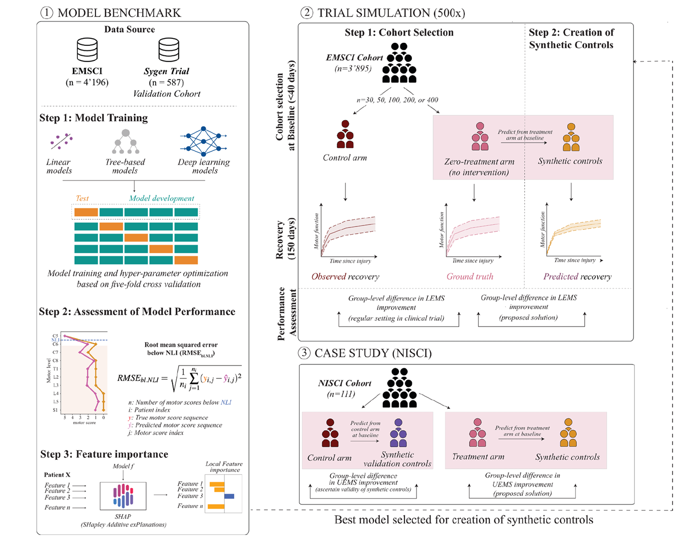 脊髓损伤作为一种罕见的神经系统疾病,其低发病率和高度异质性使得开展随机对照试验面临重重挑战。当前尚无有效药物治疗方案能够修复受损脊髓,导致患者长期生活质量严重受损,为解决临床试验中患者招募困难和小样本量的问题,研究者提出合成对照这一创新概念,即利用数据驱动模型预测患者在标准治疗下的神经功能恢复情况。作为单臂试验中的虚拟对照,从而避免随机分组并最大化接受实验性治疗的患者比例,欧洲药品管理局近年已明确认可单臂试验在罕见病中的适用性,但合成对照的实际效果仍需系统验证。本研究旨在通过脊髓损伤这一典型罕见病,全面评估合成对照在临床试验中的可行性,重点探索不同机器学习模型在预测神经恢复方面的性能,并通过模拟试验和真实世界案例验证其在减少队列异质性和降低样本量方面的潜力。