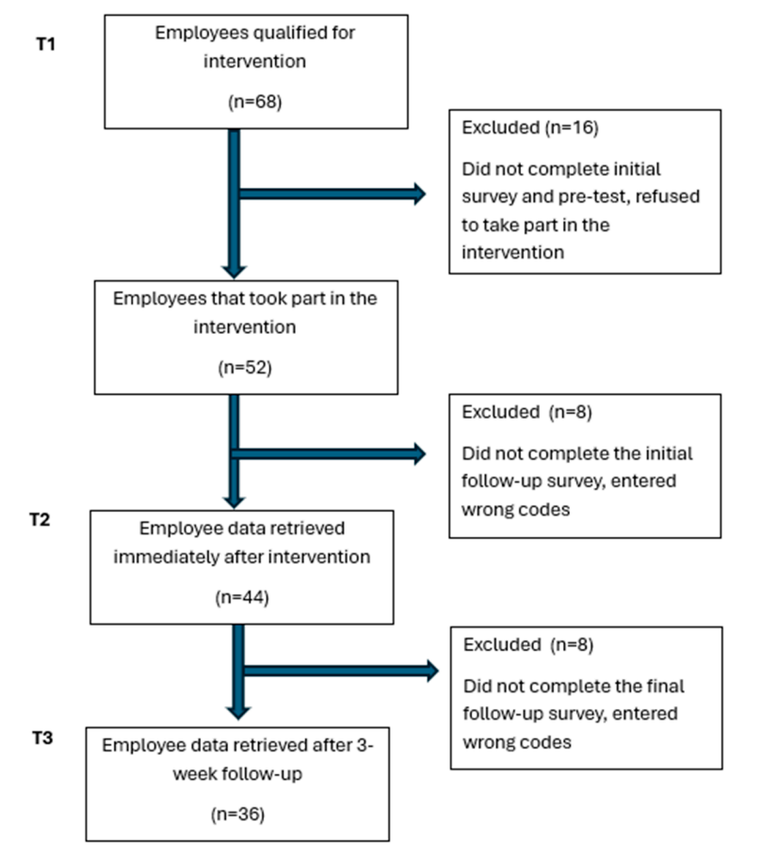 本研究采用单组前后测设计,旨在评估一项为期60分钟的“简短参与式行为与教育工作场所干预”对员工感知饮食障碍和健康饮食意向的短期影响。研究共纳入36名波兰华沙两所公立学校的教职工,其中女性占83.3%,平均年龄为46.8岁,全部为白领职员。干预设计融合三大理论框架:NLB方法、行为经济学原理及心理资源增强策略。干预内容包括10分钟理论讲解与50分钟实践练习,涵盖“午餐盒构建模块”、“健康餐盘”模型及“克服障碍”策略,并整合了多种行为改变技术。